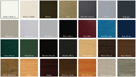 Disponemos de una gran variedad de acabados en color o imitación madera.